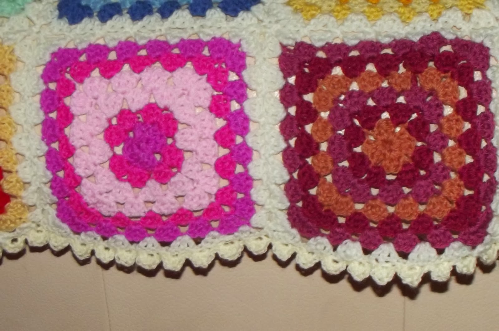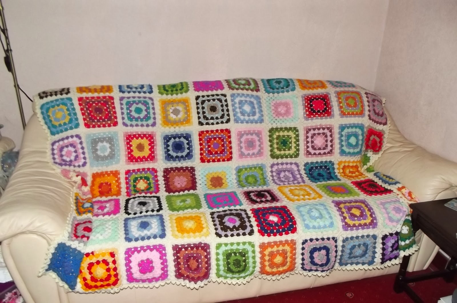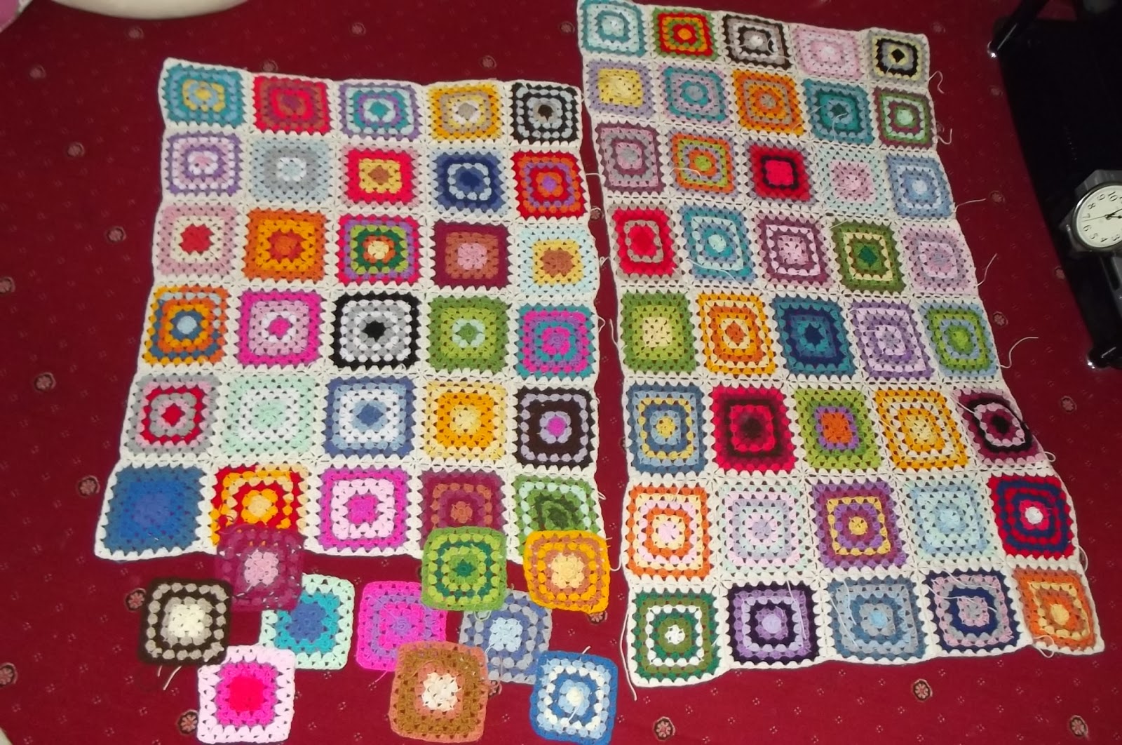 I've decided to use all colours I have, to creat funny, warm, mulitcolour throw made up with 80 different granny squares.